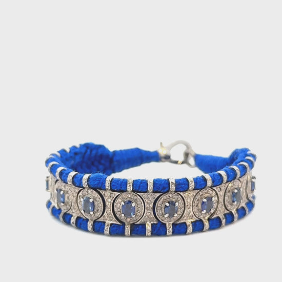 Bracciale in argento 925 con diamanti ice 3,21 ct. e zaffiri blu ovali 3,82 ct.
