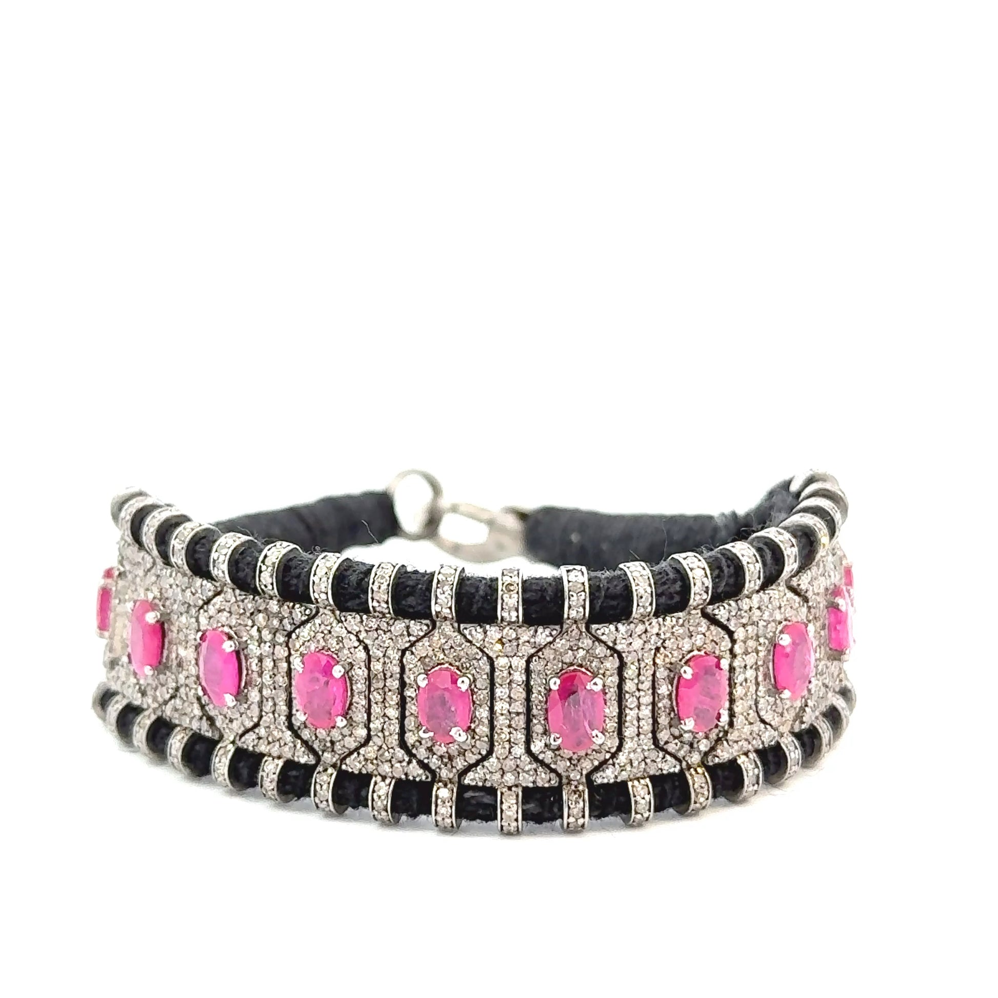 Bracciale in argento 925 con diamanti ice 6,50 ct. e rubini ovali 11,92 ct.