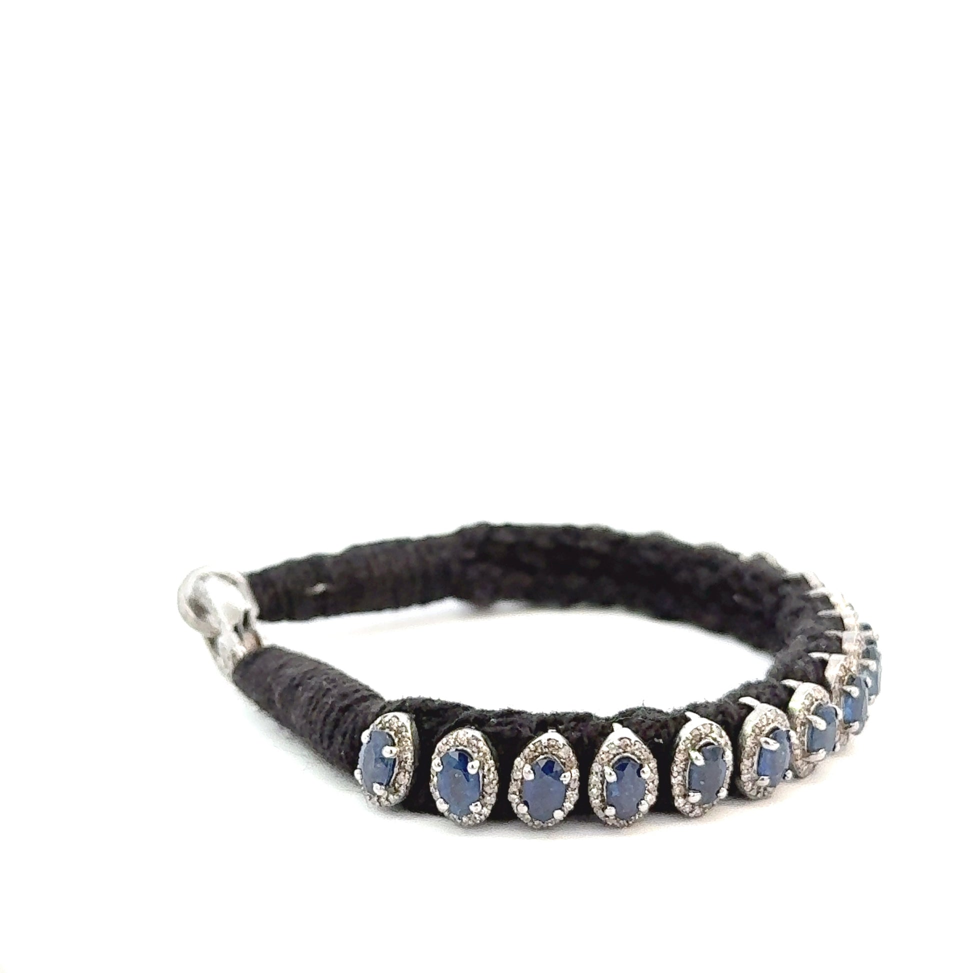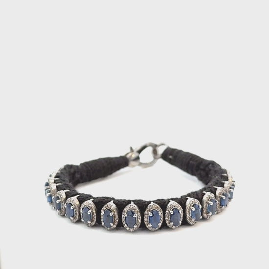 Bracciale in argento 925 con diamanti ice 1,25 ct. e zaffiri blu ovali 4,25 ct.